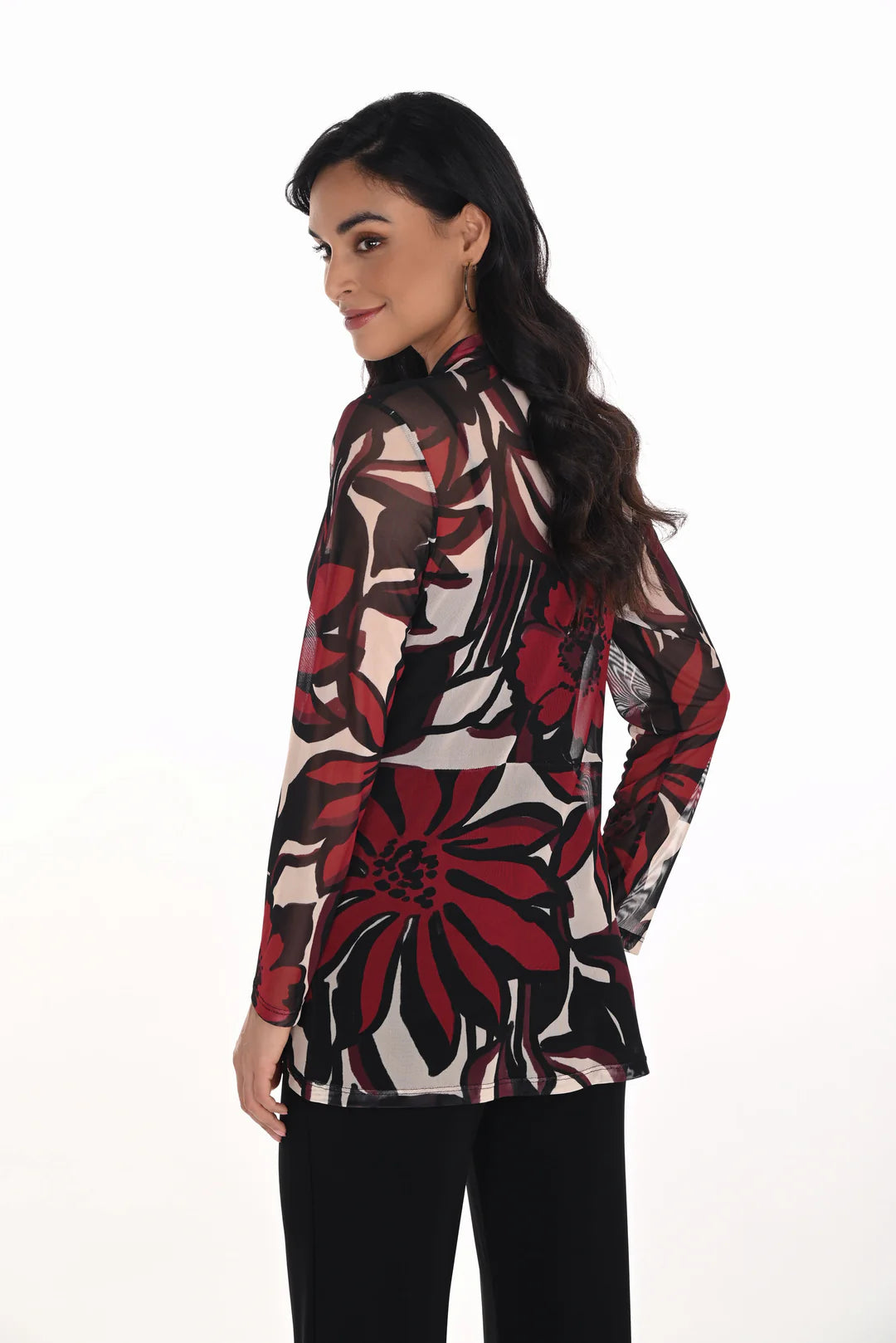 The Cabernet Knit Throw Over by Frank Lyman combines luxurious comfort with sophisticated style. Featuring a rich cabernet and black color palette, this open-front cardigan is adorned with a bold floral print that adds a feminine edge. Its draped silhouette provides versatile layering options, effortlessly elevating both casual and formal outfits. Ideal for adding warmth and a refined touch, this cardigan showcases timeless elegance through its striking design and rich tones.