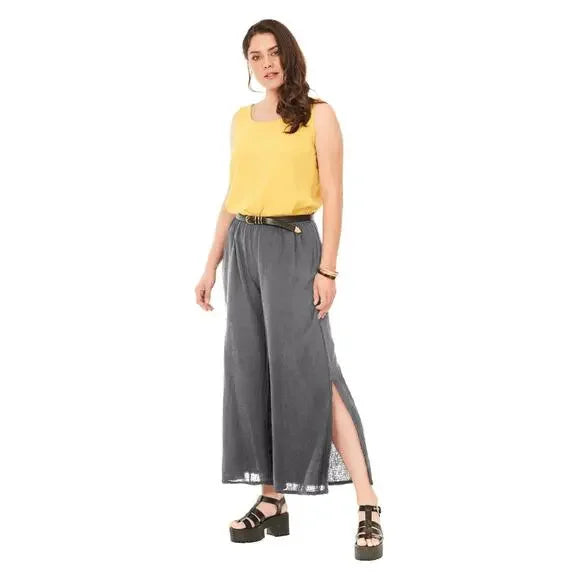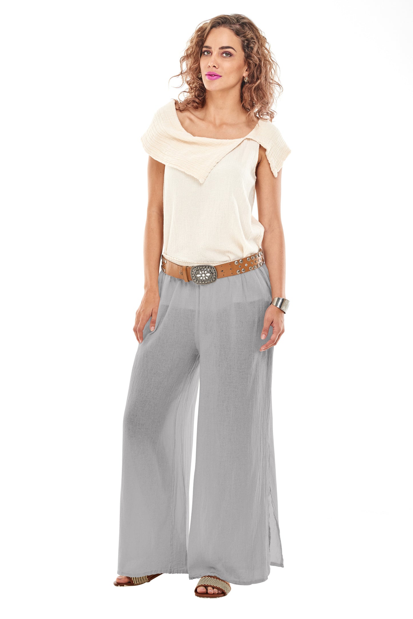The Oh My Gauze Kate Cotton Pant offers the perfect lightweight solution for summer. Crafted from 100% pre-shrunk cotton, the wide leg design features tie ends and a side slit below the knee to ensure cool comfort all day long. Enjoy effortless, stylish summer looks with these versatile, breezy pants.